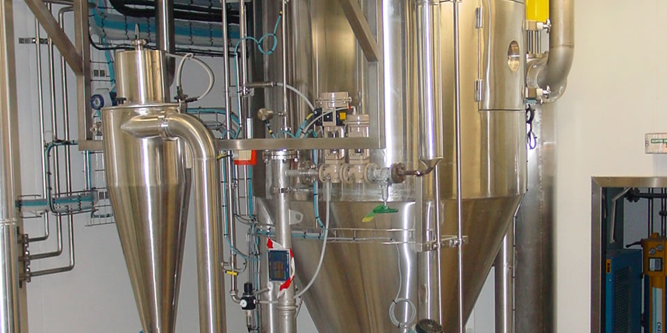 為了保護(hù)環(huán)境,溶解在有機(jī)溶劑中的產(chǎn)品的噴霧干燥在封閉循環(huán)噴霧干燥系統(tǒng)中進(jìn)行,其中有機(jī)溶劑在冷凝器單元中回收。在避免產(chǎn)品氧化降解的情況下,也可以使用相同類型的設(shè)備設(shè)置。